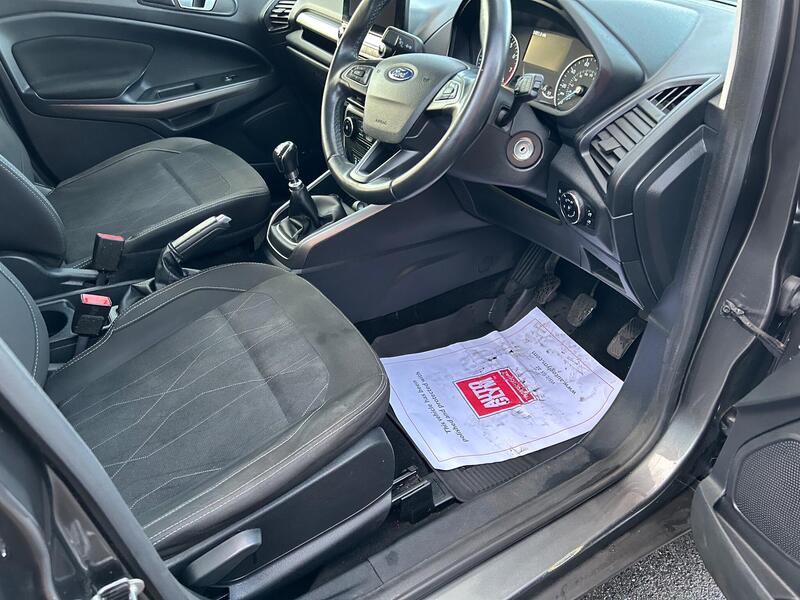 This 2018 Ford EcoSport Zetec presents an exceptional opportunity with its remarkably low mileage of just 35,000 miles. With one former keeper from new and a FULL DOCUMENTED SERVICE HISTROY 8 STAMPS IN THE SERVICE BOOK This car will not hang around for long This T Zetec variant is powered by an efficient 1.0L petrol engine, meeting Euro 6 emission standards. Inside, you'll find manual air conditioning to keep you comfortable, alongside the Ford DAB Radio featuring Ford SYNC3, which seamlessly integrates with both Apple CarPlay and Android Auto for effortless connectivity. A free 3 month warranty will come with this car which can be extended to 6 or 12 months at point of sale. Please speak to a member of the sale steam to discuss this futher if you wish. Last serviced less than 2400 Miles ago however we have checked all the levels etc.